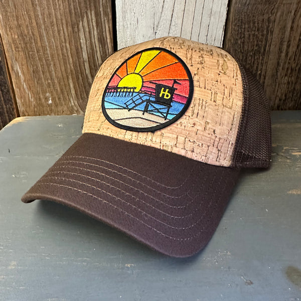 Hermosa Beach OBLIGATORY SUNSET Premium Cork Low Profile Mesh Back Trucker Hat - (Brown/Cork)