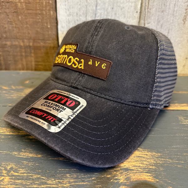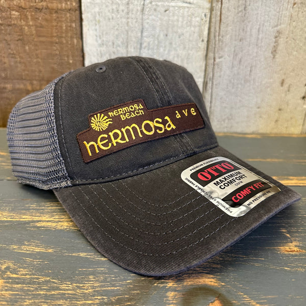 Hermosa Beach HERMOSA AVE 6 Panel Low Profile Trucker Hat - Black/Charcoal