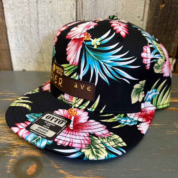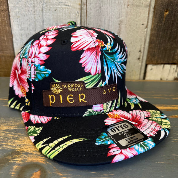 Hermosa Beach PIER AVE Hawaiian Pattern 6 Panel Mid Profile Snapback Hat - A ‘o ia (Flat Brim)