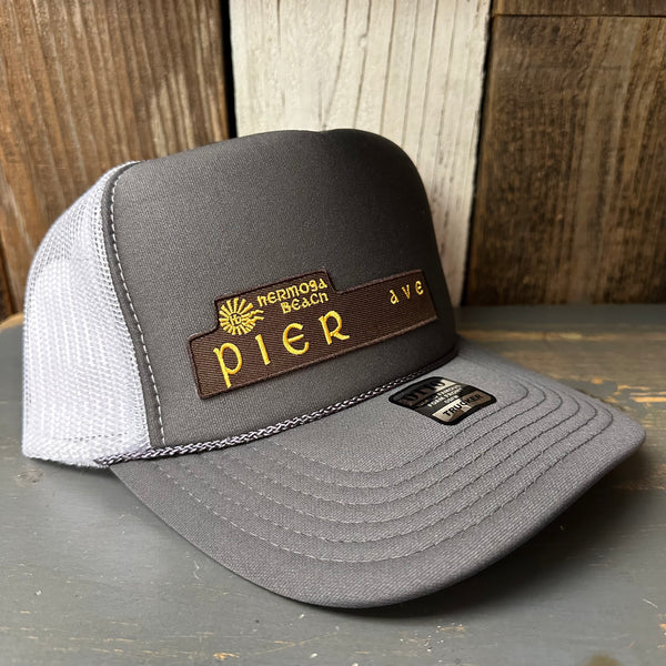Hermosa Beach PIER AVE Trucker Hat - Charcoal Grey/White