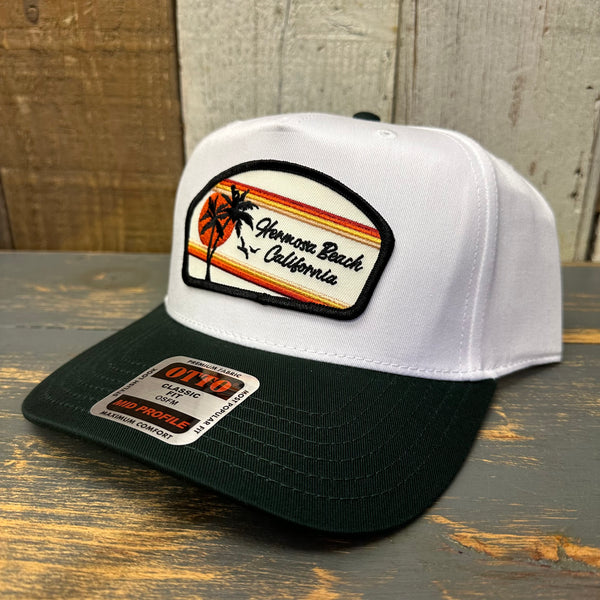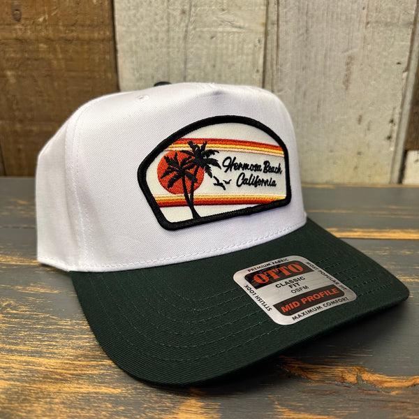 Hermosa Beach RETRO SUNSET 5 Panel Mid Profile Baseball Cap - Dark Green/White
