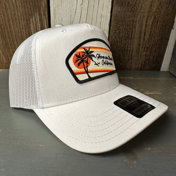 Hermosa Beach RETRO SUNSET - 5 Panel Mid Profile Mesh Back Trucker Hat - White