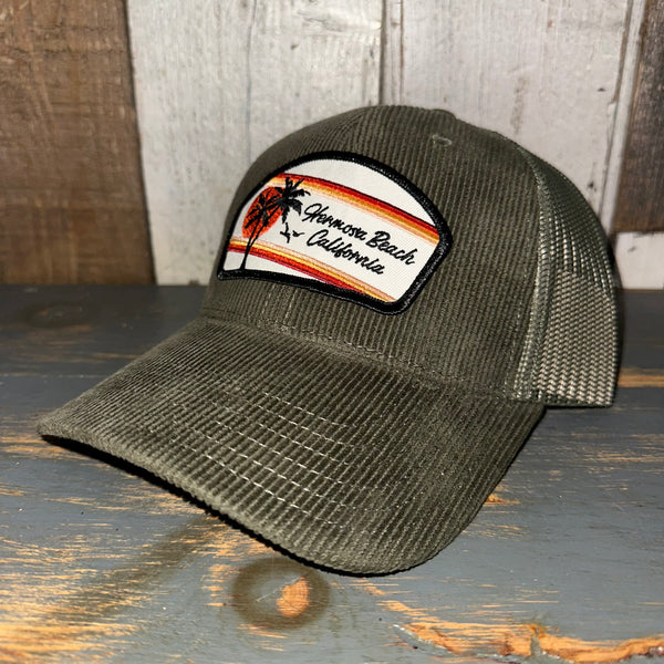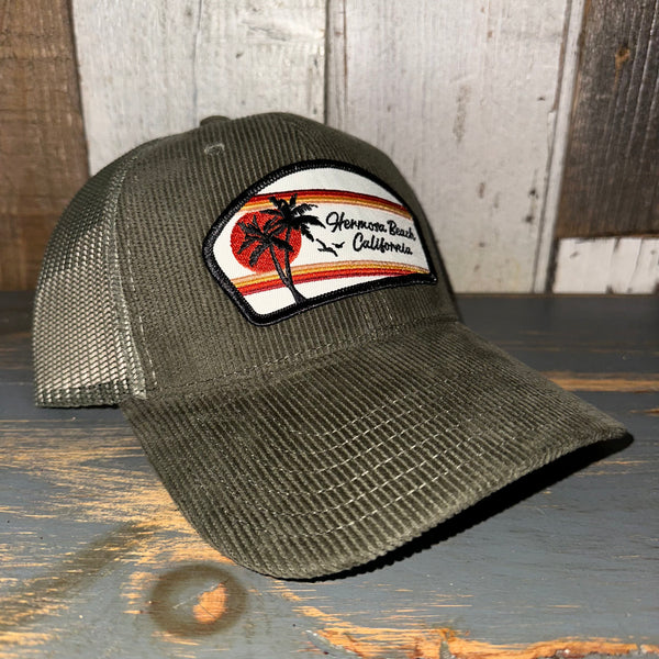Hermosa Beach RETRO SUNSET 6 Panel Corduroy Trucker Hat - Olive