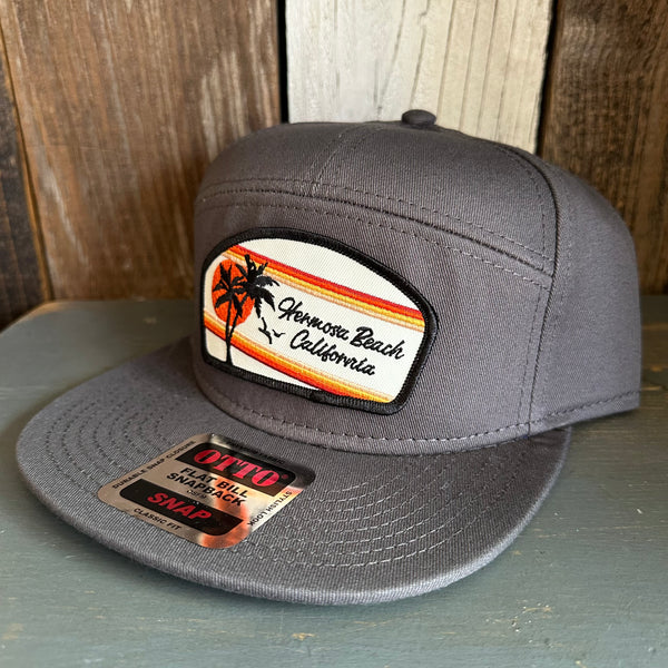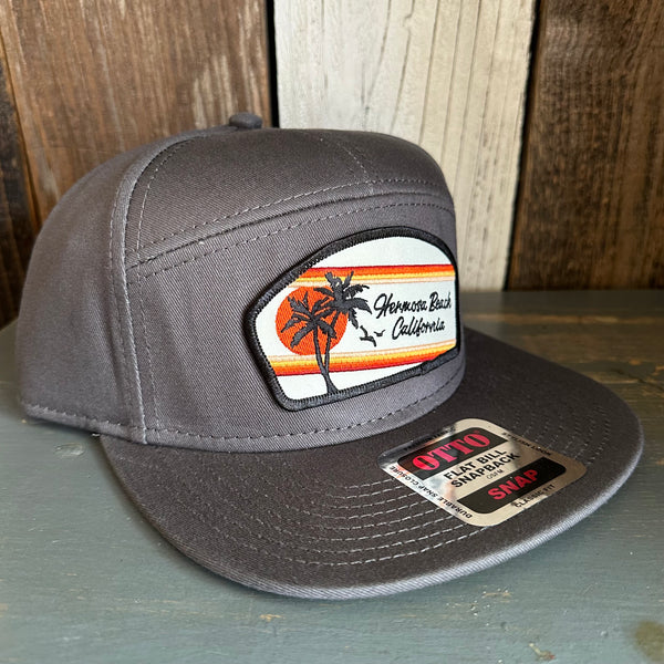 Hermosa Beach RETRO SUNSET 7 Panel Snapback Hat - Charcoal Grey