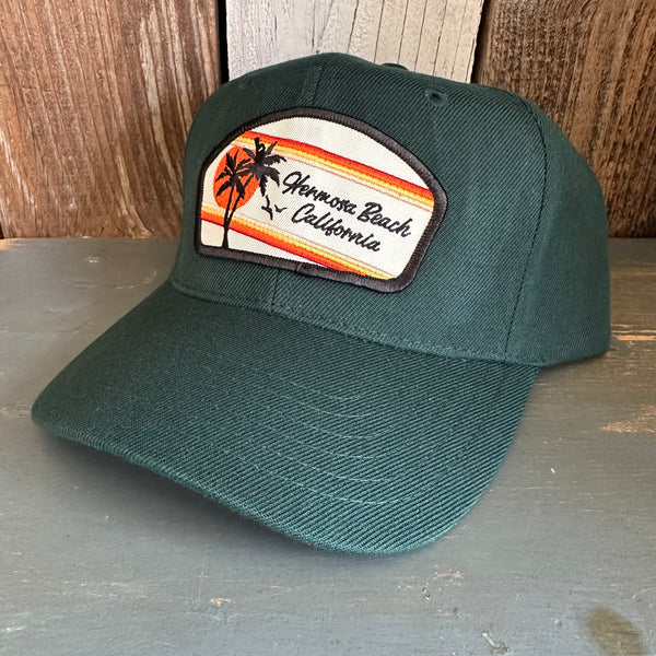 Hermosa Beach RETRO SUNSET 6 Panel Mid Profile Baseball Cap - Dark Green