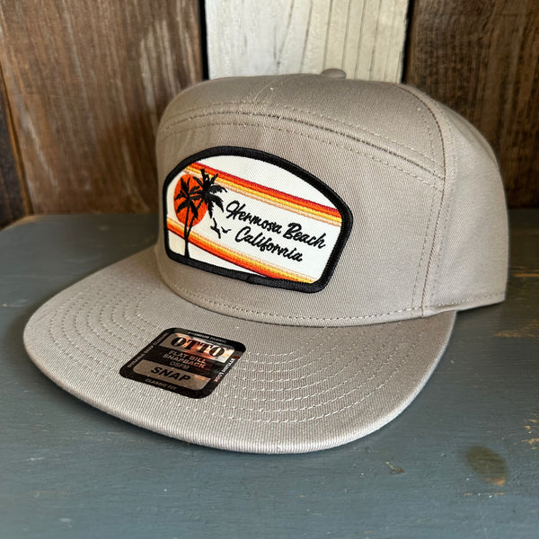 Hermosa Beach RETRO SUNSET 7 Panel Snapback Hat - Khaki