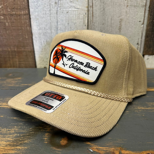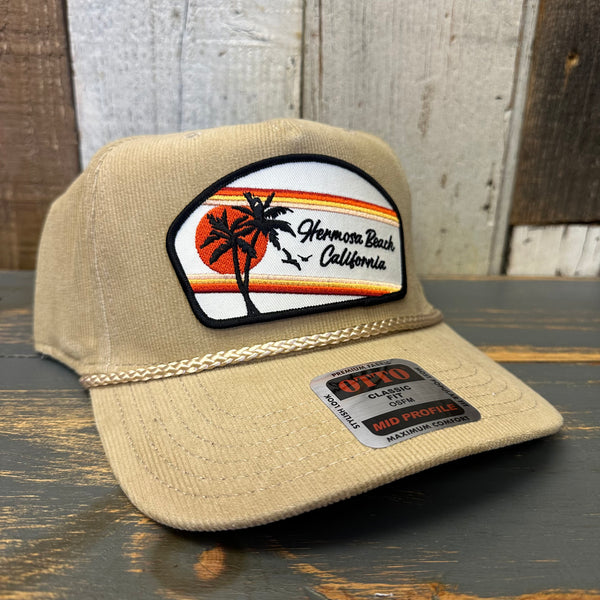 Hermosa Beach RETRO SUNSET 5 Panel Mid Profile Corduroy Baseball Cap - Khaki
