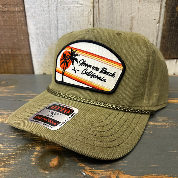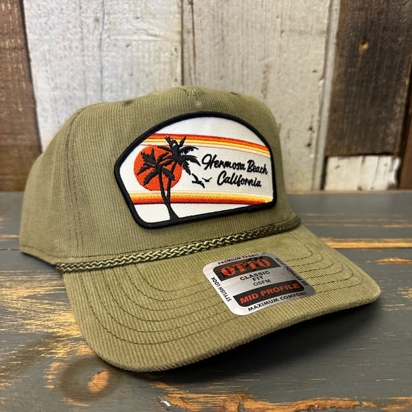 Hermosa Beach RETRO SUNSET 5 Panel Mid Profile Corduroy Baseball Cap - Olive Green