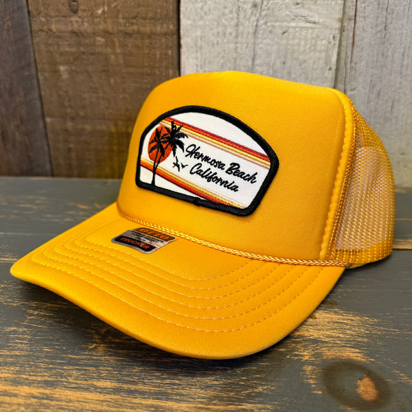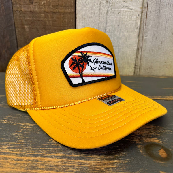 Hermosa Beach RETRO SUNSET High Crown Trucker Hat - Gold