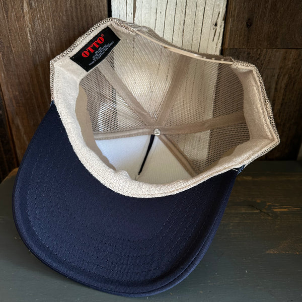 Hermosa Beach RETRO SUNSET High Crown Trucker Hat - Navy Blue/Khaki