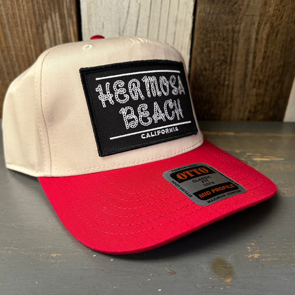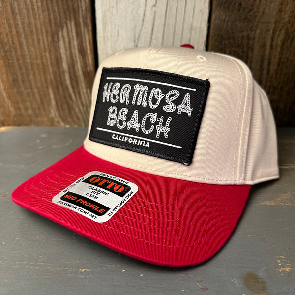 Hermosa Beach ROPER 5 Panel Mid Profile Baseball Cap - Red/Khaki