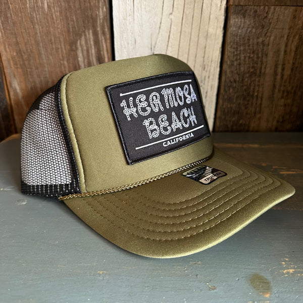 Hermosa Beach ROPER High Crown Trucker Hat - Olive/Black (Curved Brim)