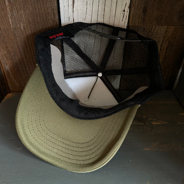 Hermosa Beach ROPER High Crown Trucker Hat - Olive/Black (Curved Brim)