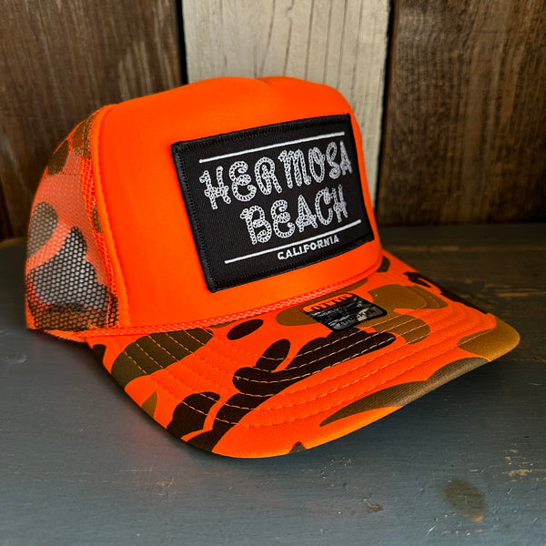 Hermosa Beach ROPER High Crown Trucker Hat - Neon Orange Hunters Camo