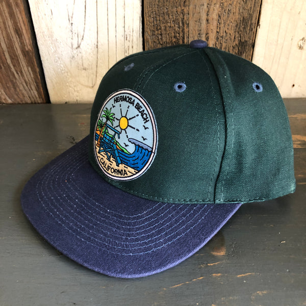 Hermosa Beach SHOREFRONT - 6 Panel Low Profile Baseball Cap with Adjustable Strap with Press Buckle - Dark Green/Navy
