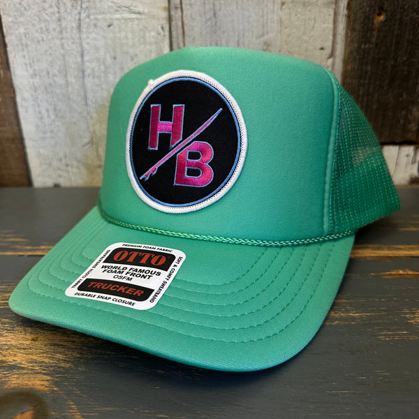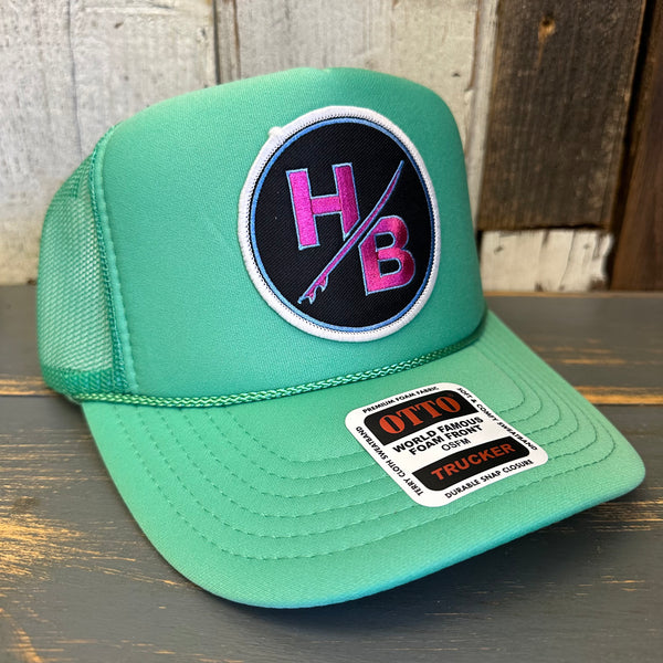 Hermosa Beach SKATEBOARDING WAS NEVER A CRIME! High Crown Trucker Hat - Cactus Green