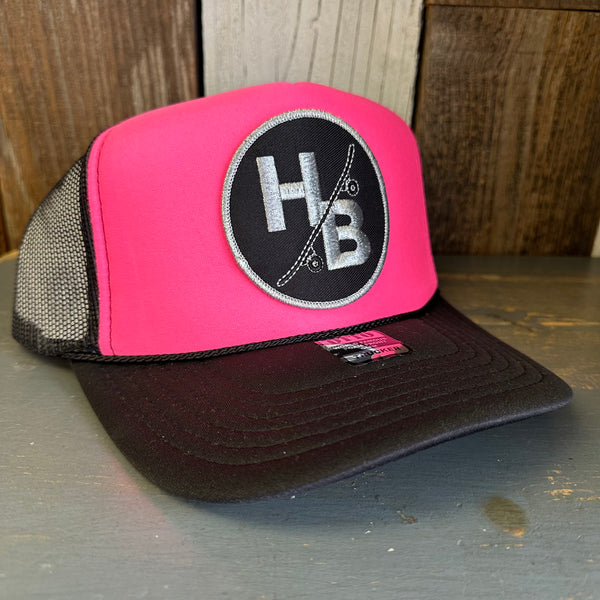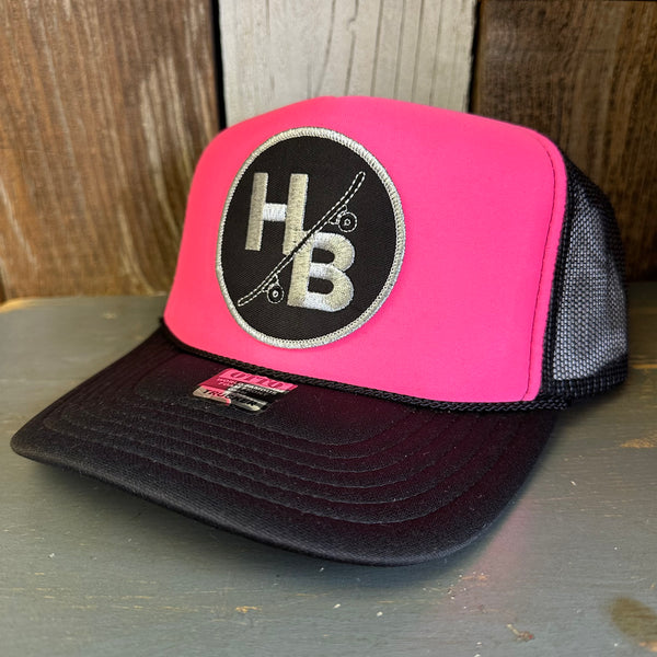 Hermosa Beach SKATEBOARDING WAS NEVER A CRIME Trucker Hat -Neon Pink/Black