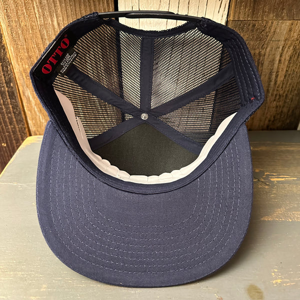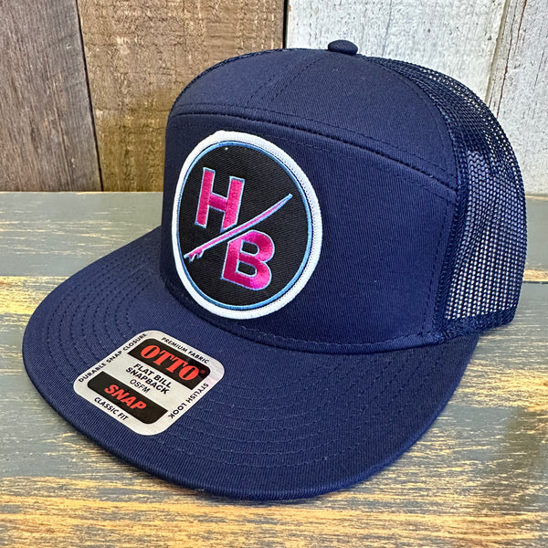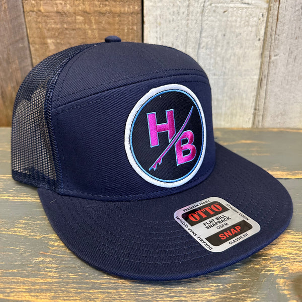 Hermosa Beach SO PITTED :: HB SURFBOARD 7 Panel Mid Profile Trucker Snapback Hat - Navy