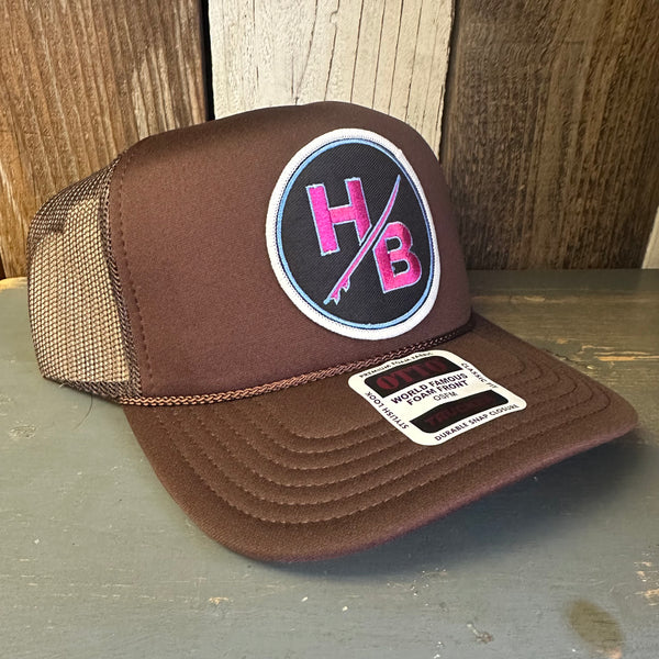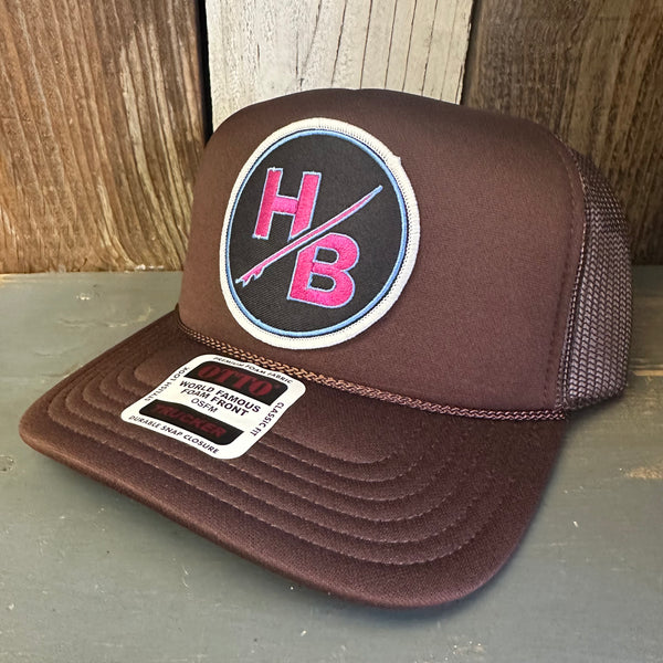Hermosa Beach SO PITTED! :: HB SURFBOARD High Crown PREMIUM Trucker Hat - Black (Curved Brim)
