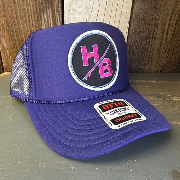 Hermosa Beach SO PITTED! :: HB SURFBOARD High Crown Trucker Hat - Purple