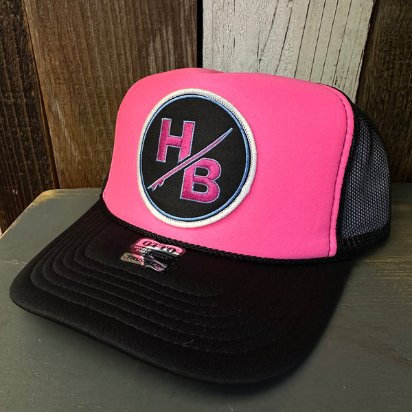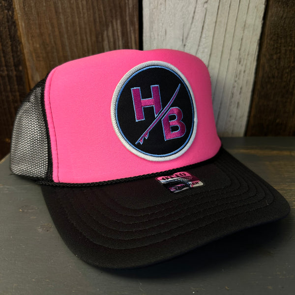 Hermosa Beach SO PITTED! :: HB SURFBOARD Trucker Hat - Neon Pink/Black