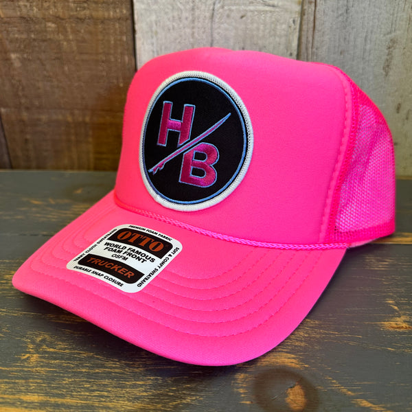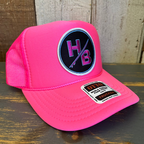 Hermosa Beach SO PITTED :: HB SURFBOARD Trucker Hat - Neon Pink