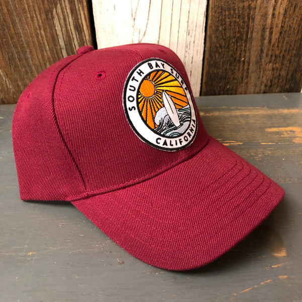 Hermosa Beach SOUTH BAY SURF (Multi Colored Patch) 6 Panel Mid Profile Baseball Cap - Maroon