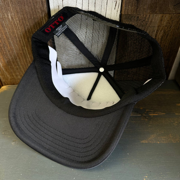 Hermosa Beach SOUTH BAY SURF (Navy Patch) High Crown PREMIUM Trucker Hat - Black (Curved Brim)