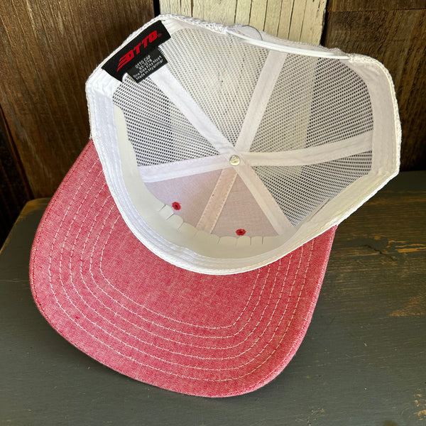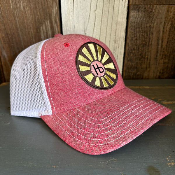Hermosa Beach SUNBEAMS 6 Panel Low Profile Mesh Back Trucker Hat - Red/White
