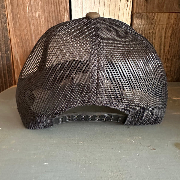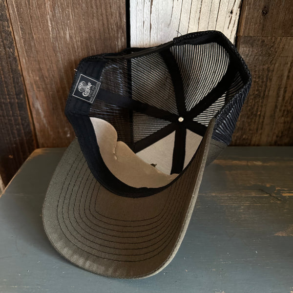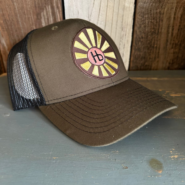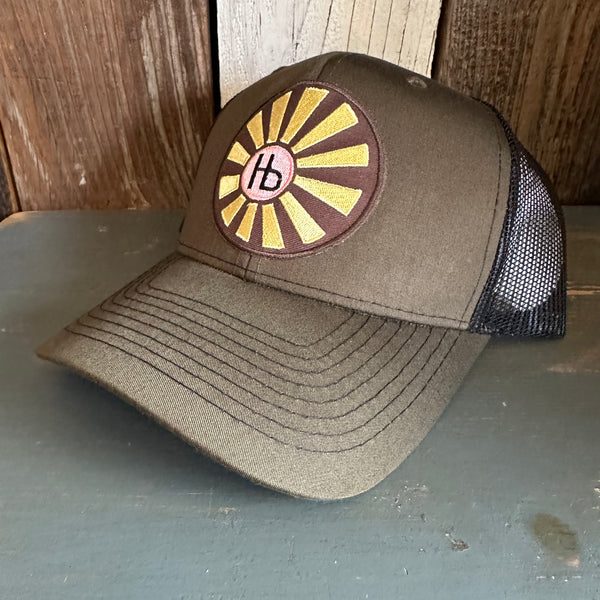 Hermosa Beach SUNBEAMS - 6 Panel Structured Poly/Cotton Front Mesh Back Trucker Hat - Black/Loden Green