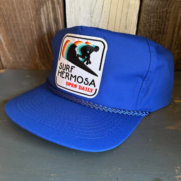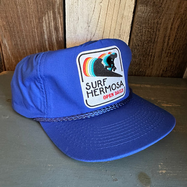 Hermosa Beach SURF HERMOSA :: OPEN DAILY 5 Panel Leather Strap Golf Cap - Royal Blue
