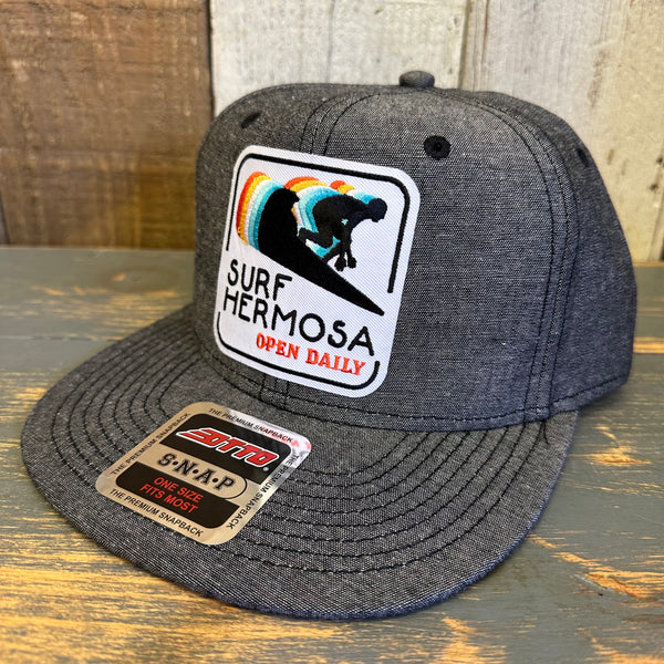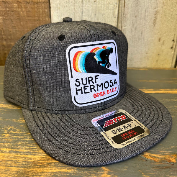 Hermosa Beach SURF HERMOSA :: OPEN DAILY 6 Panel Mid Profile Snapback Hat - Chambray Black