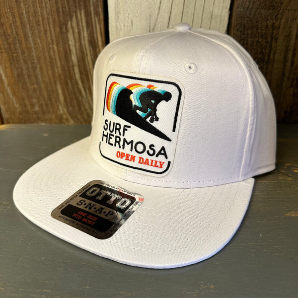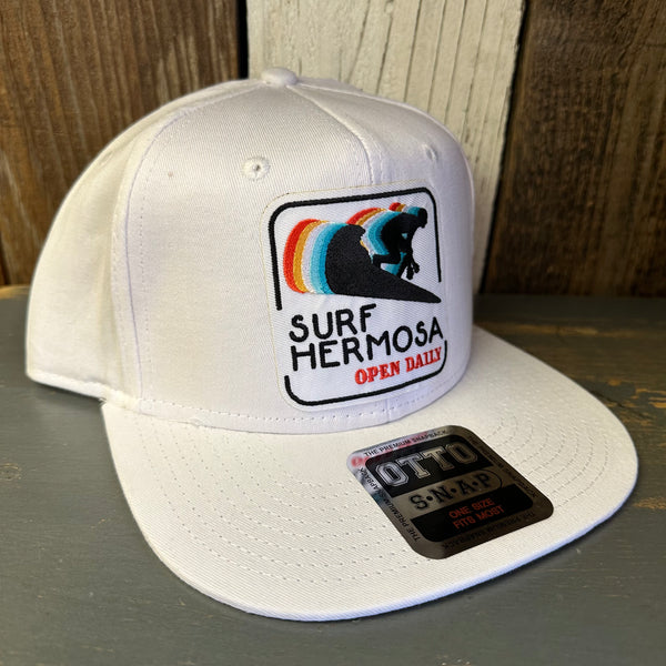 Hermosa Beach SURF HERMOSA :: OPEN DAILY 6 Panel Mid Profile Snapback Hat - White