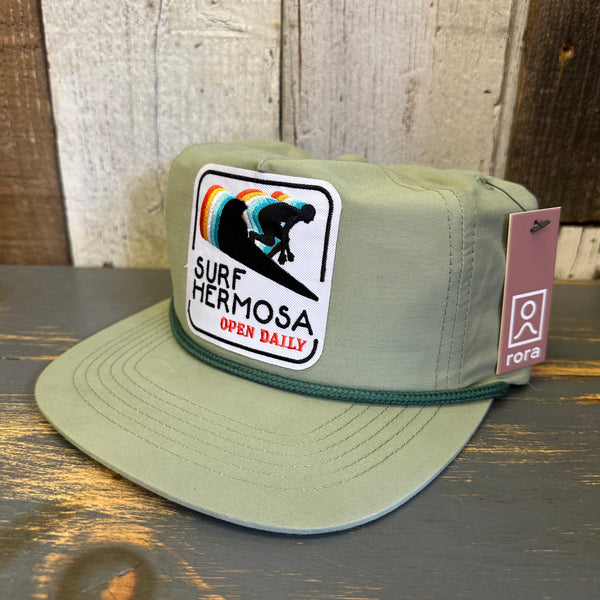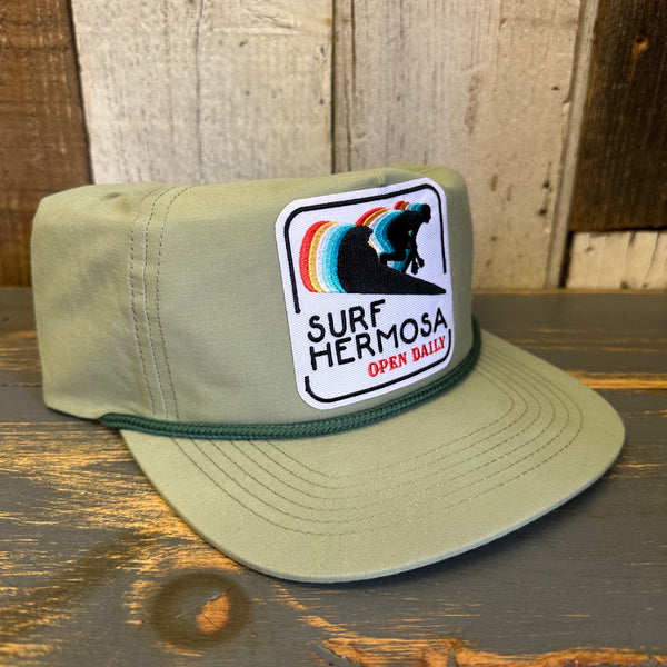 Hermosa Beach SURF HERMOSA :: OPEN DAILY Nylon/Cotton Blend Hat - Light Olive Green