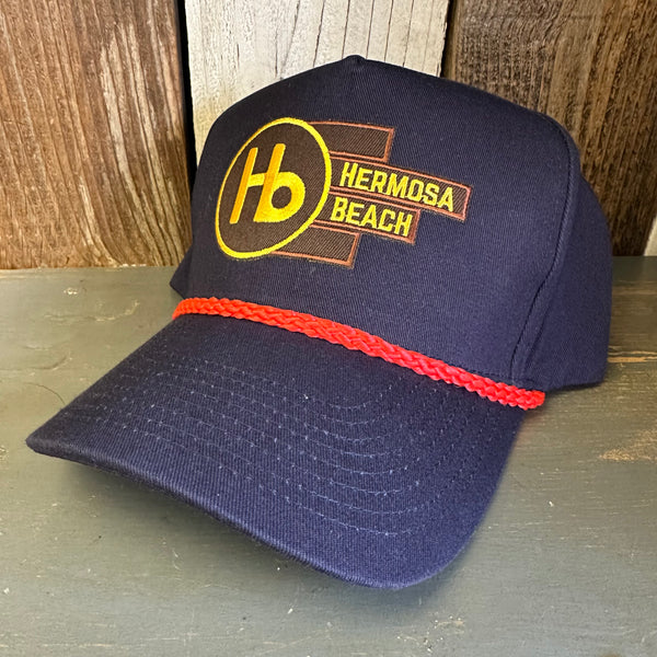 Hermosa Beach THE NEW STYLE 5 Panel Golf, Rope caps - Navy/Red Braid (Curved Brim)