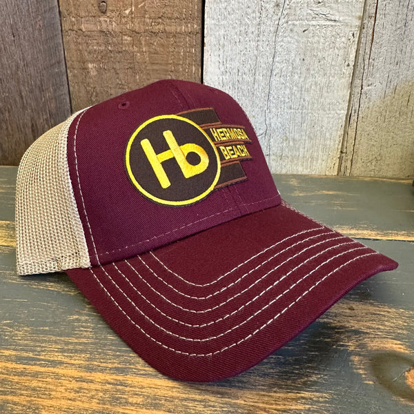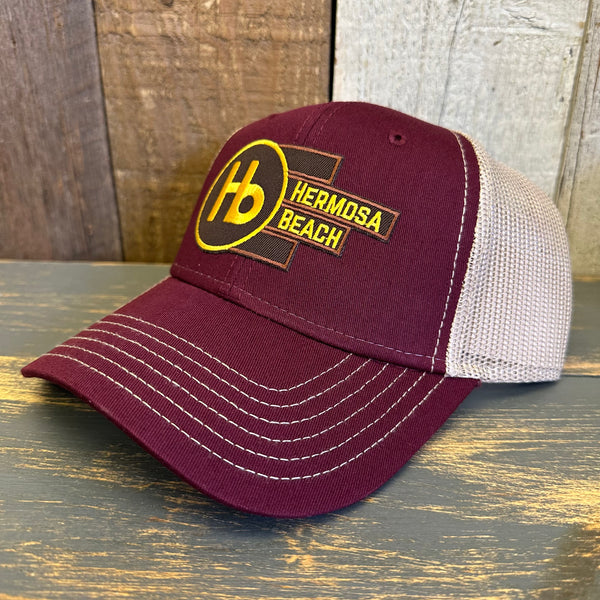 Hermosa Beach THE NEW STYLE 6 Panel Low Profile Mesh Back Trucker Hat - Maroon/Khaki