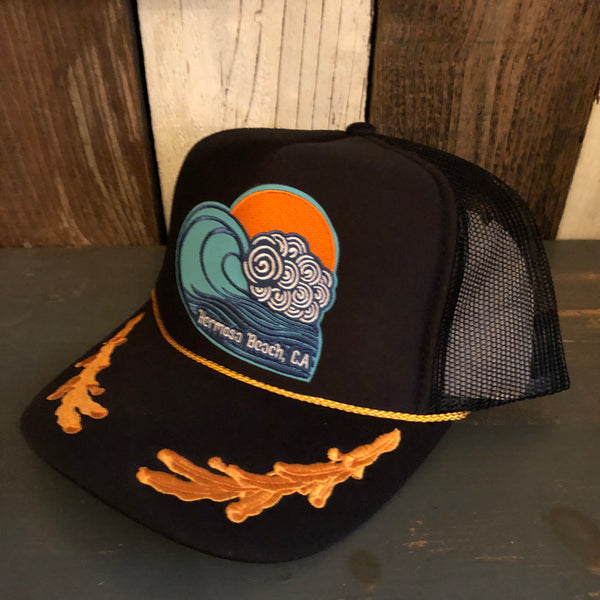 Hermosa Beach TUBULAR 5 Panel High Crown Mesh Back Captain Trucker Hat- Black/Gold