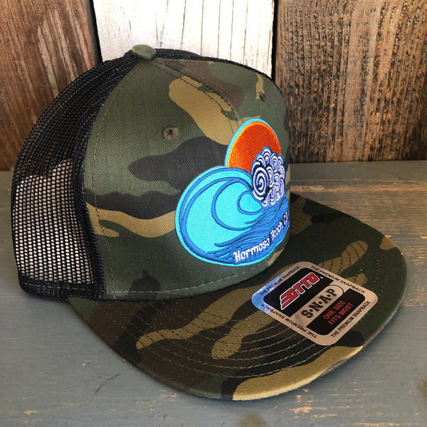 Hermosa Beach TUBULAR Camouflage 6 Panel Mid Profile Mesh Back Snapback Trucker Hat - Dark Green/Brown/Black