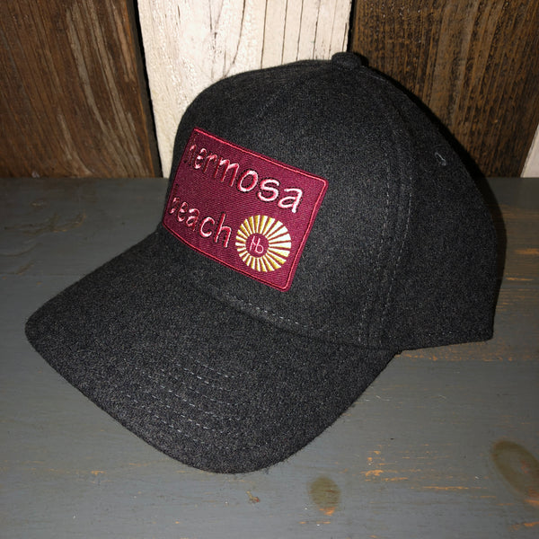 Hermosa Beach WELCOME SIGN 5 Panel Low Profile Baseball Cap - Melton Wool Blend - Heather Black