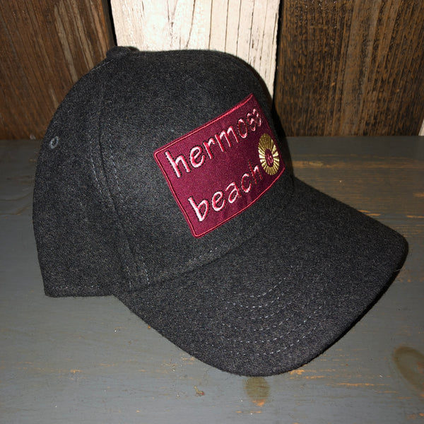 Hermosa Beach WELCOME SIGN 5 Panel Low Profile Melton Wool Blend Baseball Cap with Velcro Closure - Heather Black