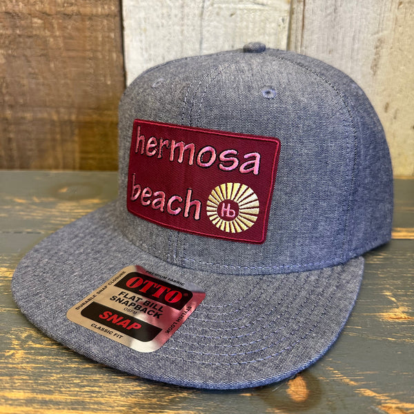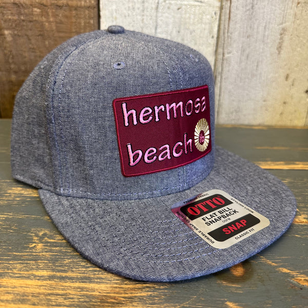 Hermosa Beach WELCOME SIGN 6 Panel Mid Profile Snapback Hat - Chambray Navy