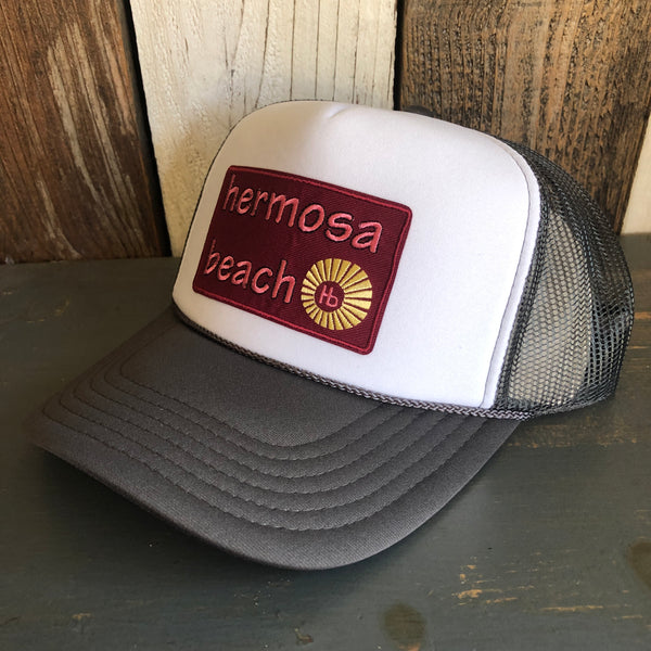 Hermosa Beach WELCOME SIGN Trucker Hat - Charcoal Grey/White/Charcoal Grey