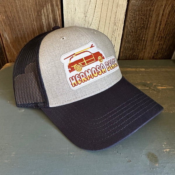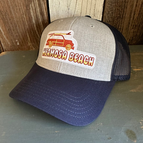Hermosa Beach WOODIE 6 Panel Low Profile Mesh Back Trucker Hat - Navy/Heather Grey