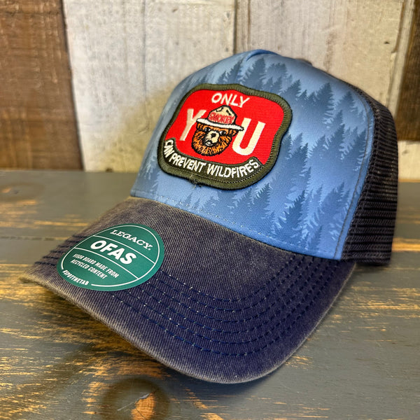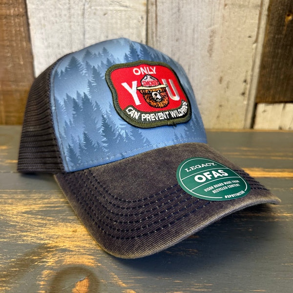SMOKEY BEAR :: ONLY YOU CAN PREVENT WILDFIRES Five-Panel Trucker Cap - Blue Pines