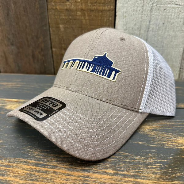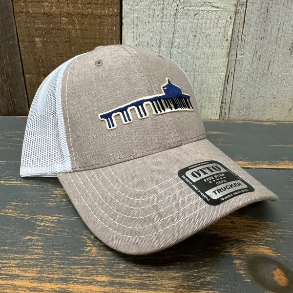 MANHATTAN BEACH PIER & ROUNDHOUSE 6 Panel Low Profile Mesh Back Trucker Hat - Khaki/White