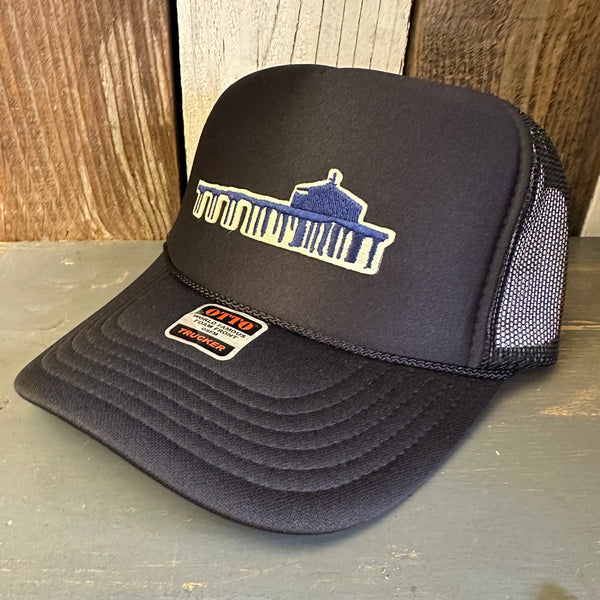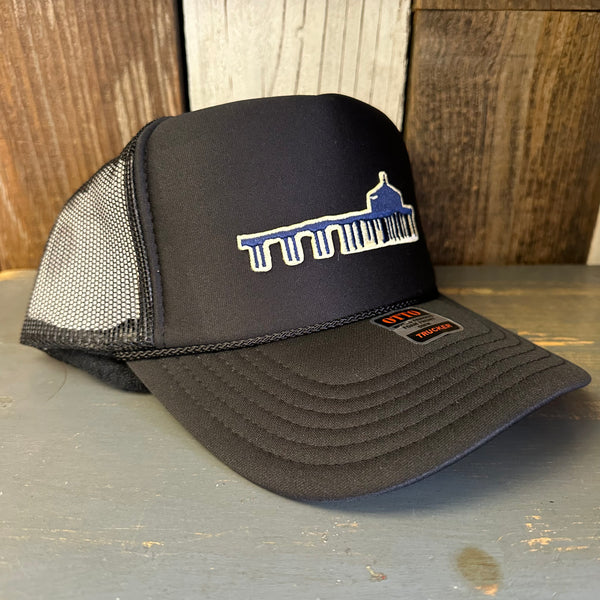 MANHATTAN BEACH PIER & ROUNDHOUSE High Crown Trucker Hat - Black (Curved Brim)