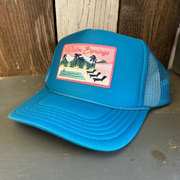 PALM SPRINGS, CALIFORNIA High Crown Trucker Hat - Turquoise Blue