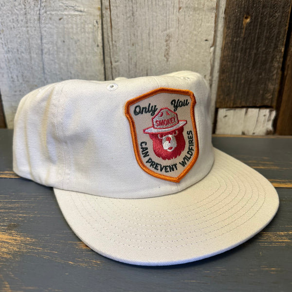 SMOKEY BEAR :: ONLY YOU CAN PREVENT FOREST FIRES Brushed Cotton Field Trip Snapback Hat - Eggshell