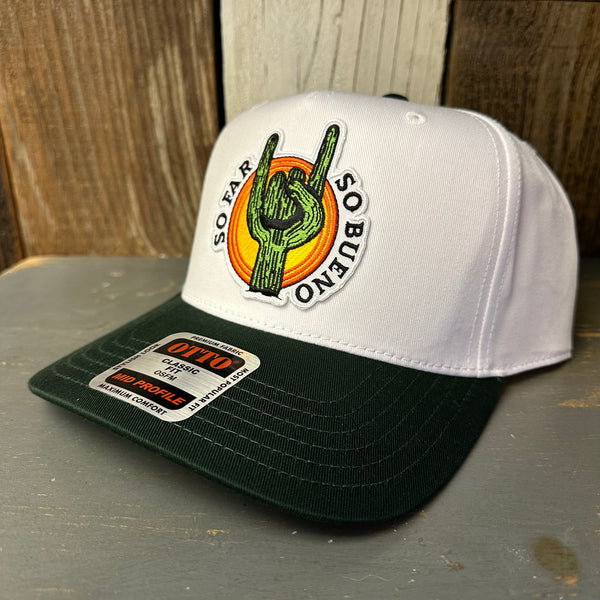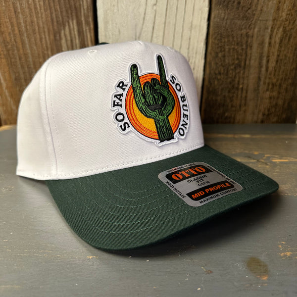 SO FAR :: SO BUENO 5 Panel Mid Profile Baseball Cap - Dark Green/White