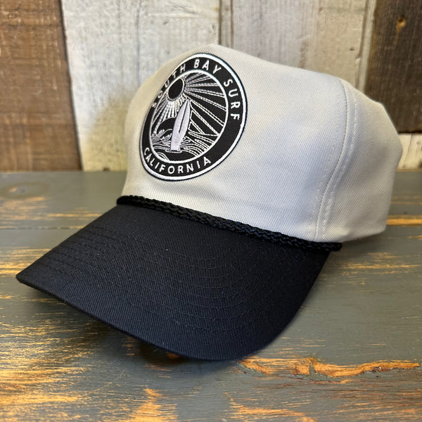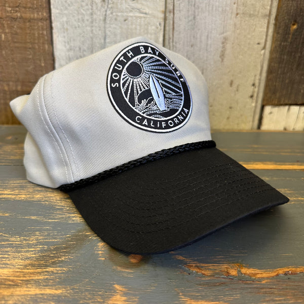 SOUTH BAY SURF (Black Patch) 5-Panel Polyester Golf - Grey/Black Braid